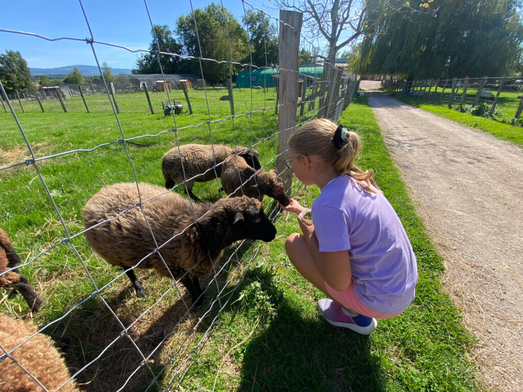 Les enfants et les adultes peuvent offrir des granulés de luzerne à nos animaux, sous la supervision de notre équipe. Ce moment permet de créer un lien privilégié avec nos chèvres, moutons, poneys, lapins et cochons d’Inde. Nous insistons sur la sécurité et le respect des animaux : chaque espèce a ses particularités, et nous montrons comment nourrir correctement pour éviter tout risque pour l’animal et pour soi-même. Pour la santé de nos animaux, certaines périodes ou certaines espèces peuvent ne pas être accessibles au nourrissage.